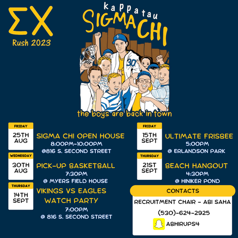 Fall Rush 2023 and Recruitment SchedulesigmachikappatauAug 23, 20231 min readUpdated: Aug 23, 2023Recruitment Event Schedule Out Now!